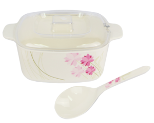 All our products are made of high quality material called “Melamine”. Melamine is an organic compound that is durable and when turned into resin, it forms plastic used for dinnerware and other utensils.